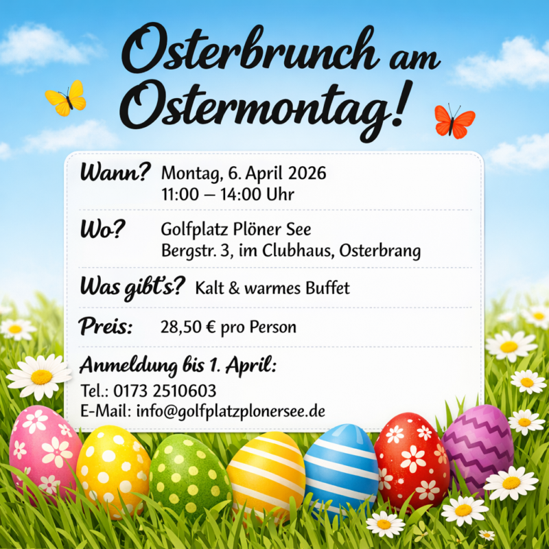 Dann kommt am Sonntag, den 20. April zum großen Osterbrunch auf dem Golfplatz Plöner See!